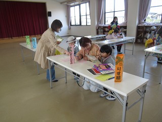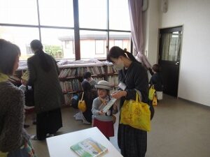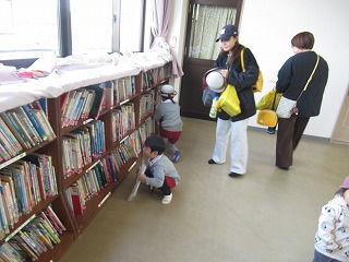 保護者の方と一緒にたくさんの絵本の中から、お気に入りの絵本を見つけていました。