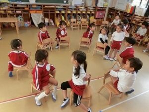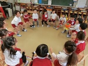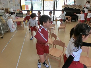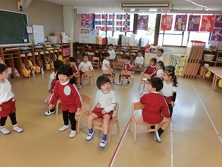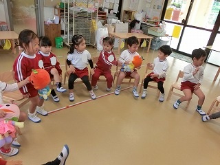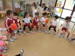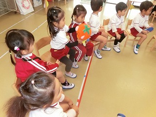 ぬいぐるみを隣のお友だちへどんどん渡していきます。