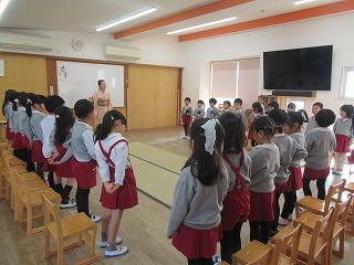今日の躾作法指導では、新年のご挨拶やお年玉のいただき方、除夜の鐘の由来などについて教えていただきました。