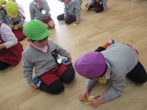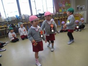 折り紙で「ベル」も作りました。難しいところは、お兄さん、お姉さんの年長さんが教えてくれたり、作ってくれたり…やさしくかかわる姿が微笑ましいです💕