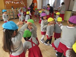 年少・中・長の3学年が3グループに分かれて交流します。