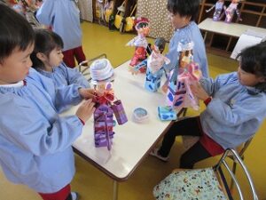 自分人形のサファリパーク隊員の首にスカーフを巻いて、おしゃれに大変身!
