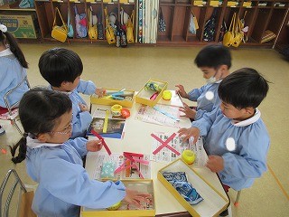 りす、年少、年中、年長と、製作方法も異なります。