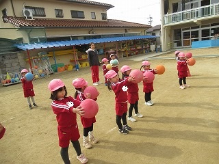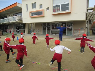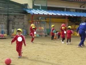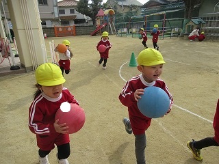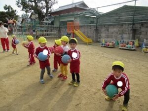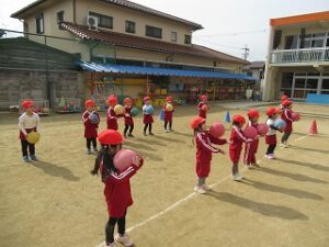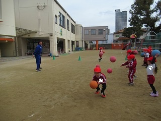 本日の体育指導は縄跳びとボールでした。