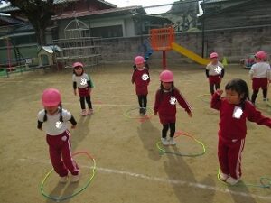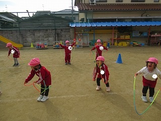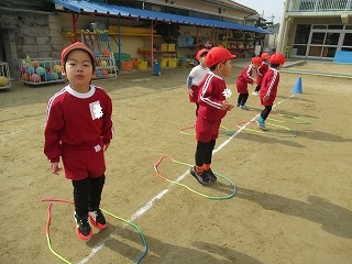 縄跳びは前回りの練習をしたり、前後に縄を動かす練習をしました。走りながら前跳びをする練習もしましたよ!