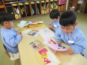扇子や冠も作って、飾りつけしたよ🌺