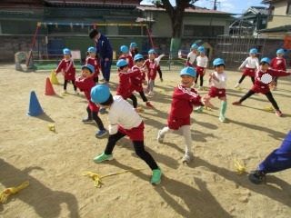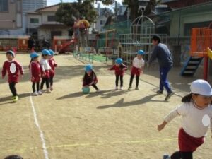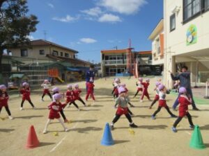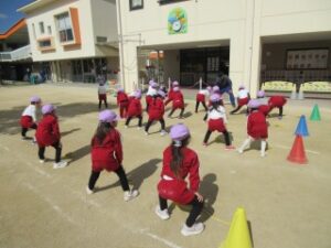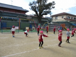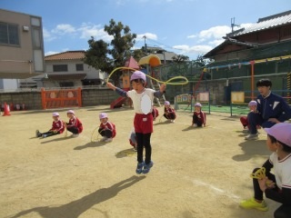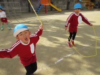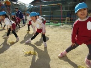 なわとびでは、少しずつ跳べる子どもが増えてきて、お互い数え合ったり応援したりしながら、みんなで高め合っています。