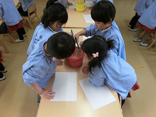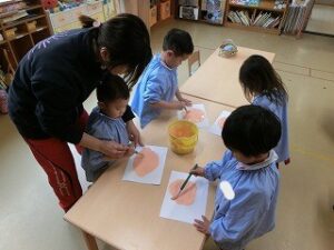 1年間作成した絵画をいれる『おもいで袋』の作成が始まりました。