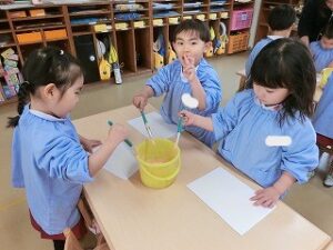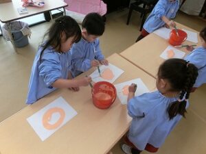 今日は、絵の具を使ってお顔の輪郭を描きました✏