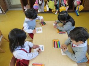 もも組さんでは、お買い物ごっこに向けてコツコツ準備を進めています!