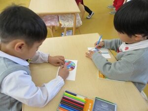 明日のお買い物ごっこで使うキャンディーの塗り絵も行いました!