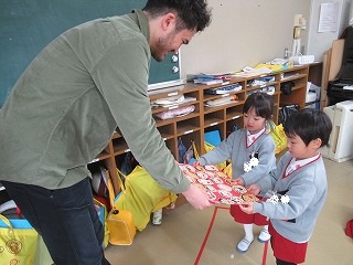 同じアルファベットを見つけたら、「Yes,Ⅰ do.」と大きな声で答えていました☆