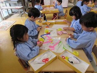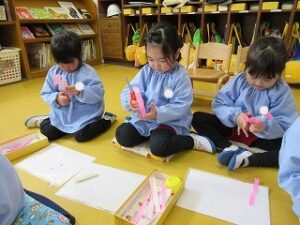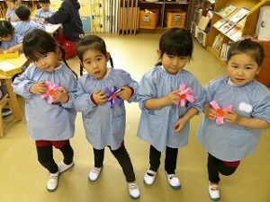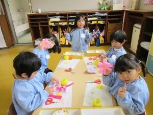 仲良くしてくれた年長さんに“ありがとう”の気持ちを込めてお花を作りました🌸💕