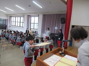 卒園式に向けて練習していた証書の頂き方も、今日で最後です。