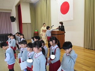 少し長い時間になりましたが、胸を張って証書を頂く姿、自分の順番がくるまで姿勢良く座る姿など、ほんとにこの一年間の成長を感じることができました。