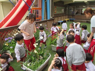 「お花咲いてる~!!」「葉っぱ大きい!!」とみんなで見ましたよ☺