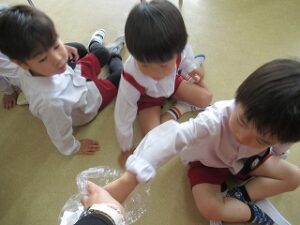 年長組になって、新しいクラスにも少しずつ慣れてきた緑組さん。
