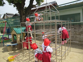みんなでお山を作ったり、お家に入ってみたり、ジャングルジムに挑戦してみたり…♡