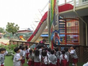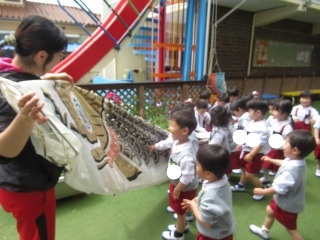 今日は鯉のぼり当番!近くで見ると大迫力!見て触れてとても楽しんでいました!