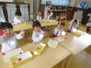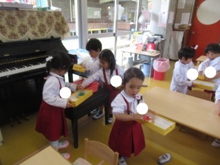 お昼からはお弁当の続き♪お道具箱の蓋をお買い物かごにして好きなおかずをお買い物しました!