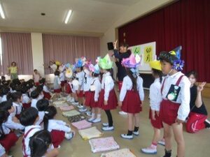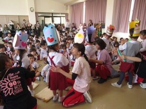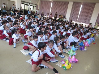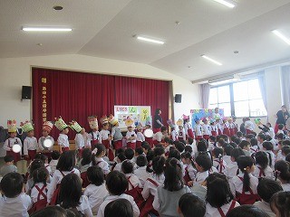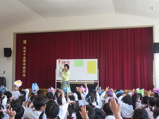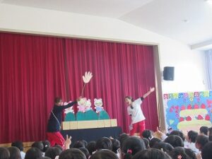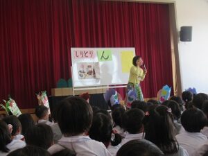 園長先生からのお話、今年はさいとうしのぶさんの「しりとりしましょ!」