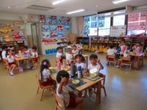 ダンスの後は、お待ちかねの給食タイム🍴