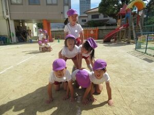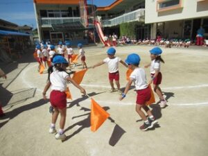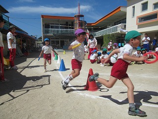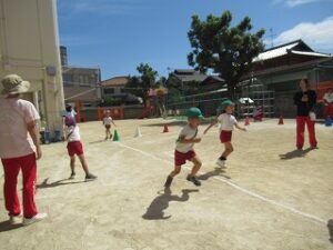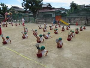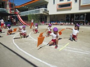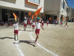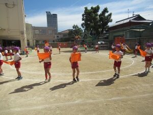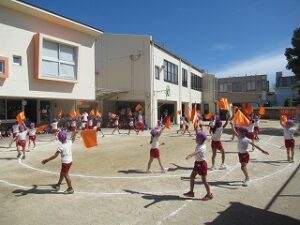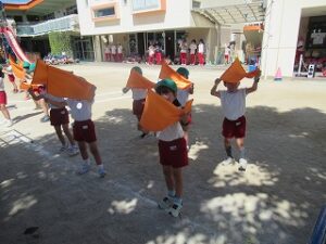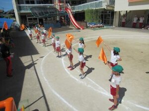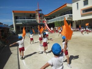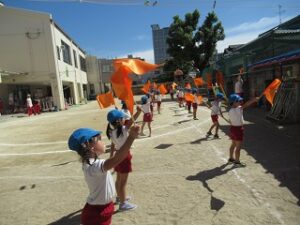 動きに添って、バサッとかっこいい旗の音が園庭に響いていました!