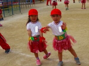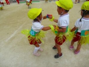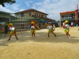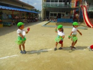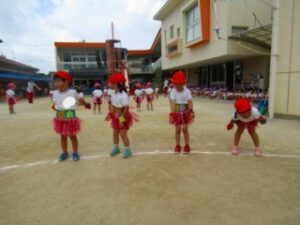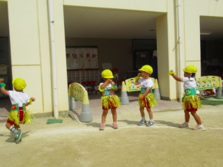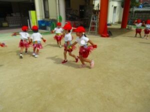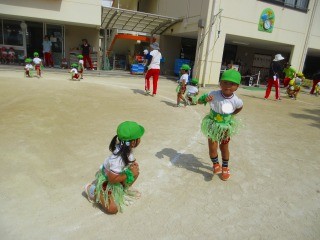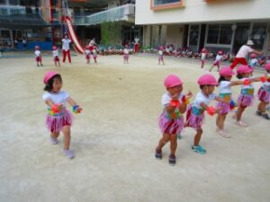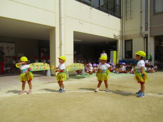 りす組さんは、親子ダンス「ガンバラッパ ガンバルーン」を踊りました。
