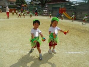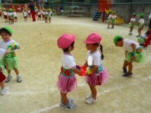 タンバリンを持った担任に向かって、一生懸命なそして、恥ずかしそうで得意げな笑顔で走る様子が、とっても愛らしいです♡