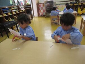 紙を持っている方の手を、上手く回して切れるようになりました!