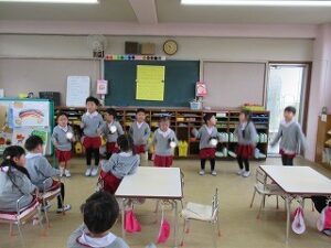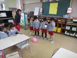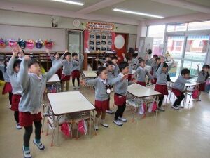 今日は朝からとても寒くて、移動時には「寒い~!!」とほっぺを真っ赤にしていた子どもたちですが、元気いっぱい体育指導に参加しました。