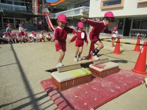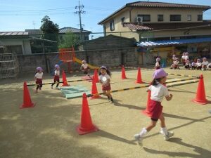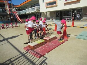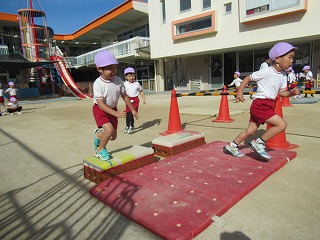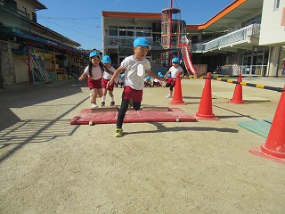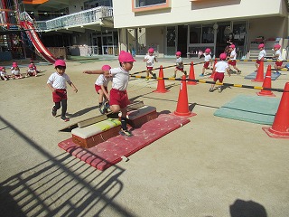 挨拶の後は、サーキットで走ったりジャンプをしたり縄を渡ったりとしっかりと身体を動かしました。