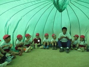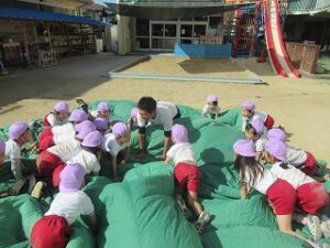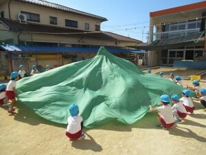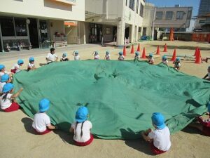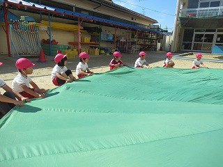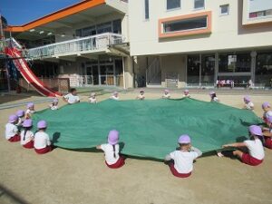 前回の体育指導で「次はパラバルーンするからね!」と体育の先生から聞いていたので、みんなとっても楽しみにしていました♡