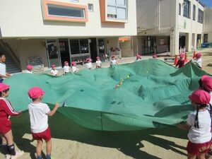 今までのいろんな技を確認したり、新しい技をしてみたり、久しぶりのパラバルーンに子どもたちも、とても楽しそうにしていました♪