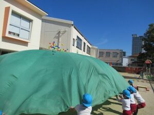 今日の体育指導は楽しみにしていたパラバルーンでした!