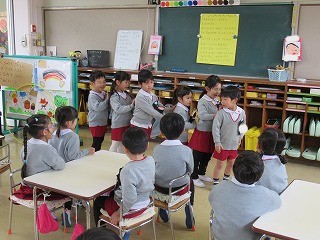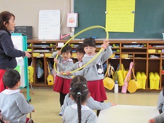 今日は朝からとても寒くて、移動時には「寒い~!!」とほっぺを真っ赤にしていた子どもたちですが、元気いっぱい体育指導に参加しました。