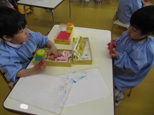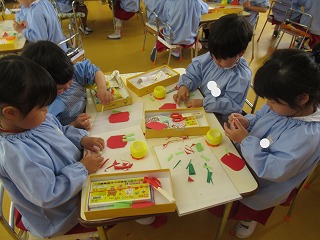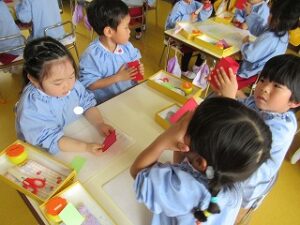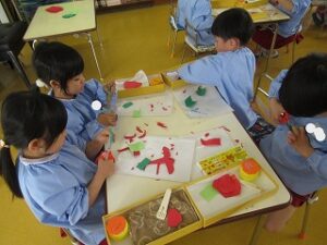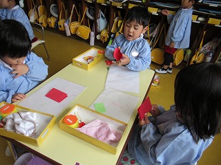 今日から午後保育!早速年中組さんではこいのぼりの製作を始めました。