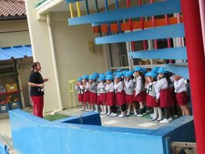幼稚園の大きなこいのぼり!毎日クラスで順番にあげています。今日はあじさい組さんがこいのぼり当番♪