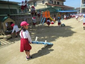 ♬やねよ~り~たかい こいのぼり~♬と元気いっぱいの子どもたちの歌声が聞こえると幼稚園のこいのぼりも嬉しそうに泳いでいます🎏