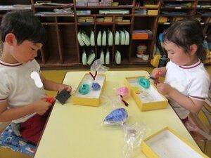 秋にぴったりの「ばけばけはっぱ」では、隠れた生き物をすぐに発見!流石、年中さんですね。