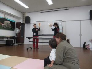 楽しい挨拶クイズでも、さっそく元気いっぱい答えてくれた子どもたち。「おはようございます」「さようなら」が元気に言えるおおみのっ子でいてくださいね。