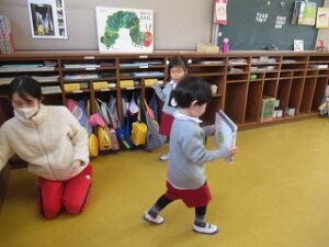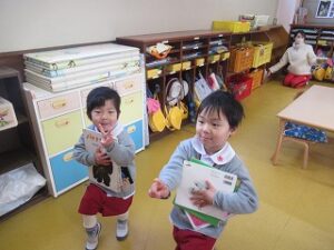 さっそく新しく回ってきた絵本の中から好きな絵本を選んで持ち帰っています。