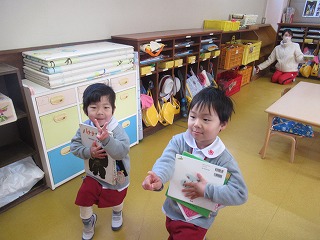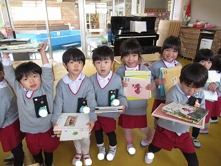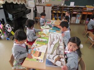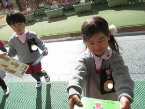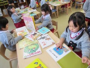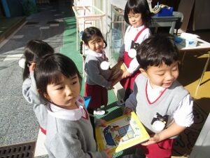 外遊びのあとは、学級図書の絵本を他のクラスと交換しました。