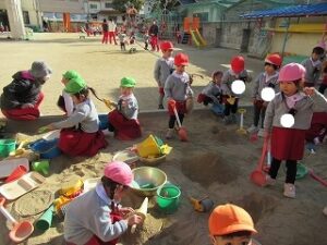 おにごっこをしたり、砂場で遊んだり、滑り台やジャングルジムをしたり、それぞれ楽しんでいましたよ!