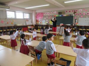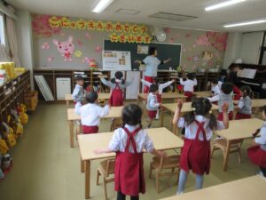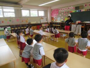 はじめのお店屋さん当番ははもも組といちご組!お客さんはれもん組とめろん組!