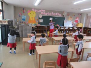 商品が売り切れると交代!次はれもん組とめろん組がお店屋さん当番!お客さんはいちご組ともも組。