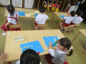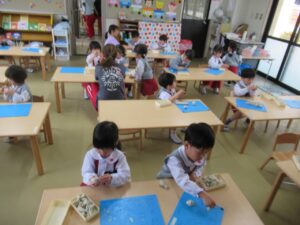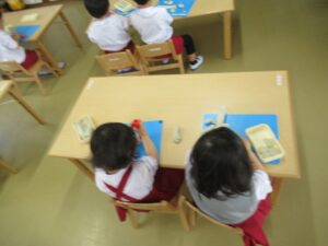 「おかねはだいじやからおとしたらあかんで~」と大切そうに扱ったり、みんなお店屋さんの世界に入り込んで楽しんでいました!