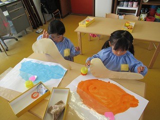めろん組は魔女の家にお邪魔してお手紙をもらい、楽しいゲームのプレゼントをもらい、みんなでお菓子釣りをして遊びました。